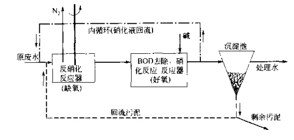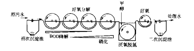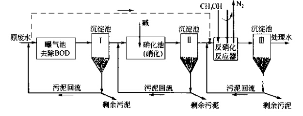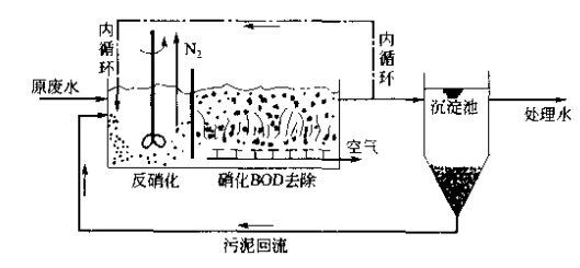 污水中的氮一般以有機氮、氨氮、亞硝酸鹽氰和硝酸鹽氮四種形式存在。生活污水中氮的主要存在形態(tài)是有機氮和氨氮。通常采用的二級生化處理技術對氮的去除率是比較低的,一般將有機氮化合轉(zhuǎn)化為氨氮,卻不能有效地去除氮。污水脫氮,從原理看,可以分為物理法、化學法和生物法三大類。由于生物脫氮一般能夠滿足有關方面對污水凈化的要求,而且價格低廉,產(chǎn)生的二次污染物較易處理,因此生物脫氮方法是當前最活躍的研究與投資開發(fā)領域。 一、生物脫氮技術 生物脫氮技術主要是利用污水中某些細菌的生物氧化與還原作用實現(xiàn)的。生物脫氮工藝從碳源的來源分,可分為外碳源工藝和內(nèi)碳源工藝;從硝化和反硝化過程在工藝流程中的位置來分,可分為傳統(tǒng)工藝和前置反硝化工藝;按照細菌的存在狀態(tài)不同,可以分為活性污泥法和生物膜法生物脫氮工藝。前者的硝化菌、反硝化菌等微生物處于懸浮態(tài),而后者的各種微生物卻附著在生物膜上。 1.活性污泥法 活性污泥法是一種歷史悠久、目前應用最廣泛的生物脫氮技術,它有許多種形忒。 (1)活性污泥法傳統(tǒng)流程這是一種傳統(tǒng)的三級生物脫氮工藝,即有機物的氧化、硝化和反硝化作用分別在不同的構(gòu)筑物中完成,如下圖所示: 由于有機物去除、氨氧化和硝酸鹽還原依次進行,彼此之間相對獨立,并分別設置污泥沉淀及回流系統(tǒng),系統(tǒng)運行的靈活性比較強,有機物降解菌、硝化菌和反硝化菌的生長環(huán)境均較佳,因而反應速度快,脫氮效果也比較好。但是,三級活性污泥法的流程長、構(gòu)筑物多、附屬設備多,因此基建費用高、管理難度大。此外,為了保持硝化所需的穩(wěn)定pH值, 往往兩要向硝化池加堿,為了保證反硝化階段有足夠的電子受體,需要外加甲醇等碳源,為了除去尾水中剩余的有毒物質(zhì)甲醇,又必須增設后曝氣池,所以運行費用也很高。可以看出,這種工藝的確具有很大的局限性。 如果將有機物去除和硝化放在同一個反應器中進行,而將反硝化作用放在另一個反應器中進行,則可以將三級生物脫氮系統(tǒng)簡化為兩級生物脫氮系統(tǒng)。如下圖: 與三級生物脫氮流程相比,兩級生物脫氮流程的基建費用和占地面積均有所降低,但是仍然需要外加甲醇和堿源。 (2)前置反硝化生物脫氮系統(tǒng)又稱缺氧-好氧活性污泥脫氮系統(tǒng)、A/0生物脫氮流程、 改良LudMck-Euinger工藝等。前置反硝化是目前使用比較廣泛的一種脫氮工藝(分建式缺氧好氧活性污泥脫氮系統(tǒng)如下圖:)。 除分建式系統(tǒng)外,本工藝還可以建成合建式裝置,即將缺氧和好氧環(huán)境放在-個構(gòu)筑物內(nèi),中間以擋板隔開,擋板下端與池內(nèi)壁之間以一定的縫隙相通,如下圖所示: 采用合建式裝置,對于現(xiàn)有推流式曝氣池的改造來說更加方便。 與傳統(tǒng)的生物脫氰流程相比較,該流程具有如下優(yōu)勢。 ①由于構(gòu)筑物數(shù)量減少,因而流程得以簡化,占地面積減少,且缺氧段消耗原污水中的部分有機物,能夠降低好氧段的有機物污泥負荷,不僅容易使硝化菌取得競爭優(yōu)勢,而且降低了曝氣充氧的電耗,因而基建費用和運行費用均比較低。 ②將缺氧段放在好氧段前邊,可以起到生物選擇器的作用,有利于防止污泥膨脹,改善活性污泥的沉降性能。 ③反硝化過程能夠充分利用原污水中有機物和內(nèi)源代謝產(chǎn)物作為電子受體,既可以減少或取消外加碳源,從面省去后曝氣池,提高處理水水質(zhì),又可以保證較高的碳比,有利于反硝化的充分進行。 ④由于存在內(nèi)循環(huán),缺氧反硝化產(chǎn)生的堿度能夠補償硝化反應所造成的pH值下降,大大降低了堿投加量。 前置反硝化生物脫氮系統(tǒng)也有自己的不足之處。一是處理出水中含有一定濃度的硝酸鹽,可能污染受納水體。第二,由于內(nèi)回流比限制本工藝的脫氮率一般為70%~80%, 很難達到90%。而且,該工藝對運行管理人員的素質(zhì)要求比較高。例如,如果系統(tǒng)運行不當,沉淀池內(nèi)將發(fā)生反硝化反應,造成污泥上浮,使處理水惡化。 (3)氧化溝工藝從工藝、流態(tài)和構(gòu)造方面看,氧化溝也非常適合于生物脫氮。 ①氧化溝的污泥齡通常很長,一般可達15~30d,非常適合于世代時間長、增值緩慢的硝化菌存活與繁殖。 ②氧化溝往往做成總長達幾十米甚至上百米的環(huán)行構(gòu)筑物。由于循環(huán)次數(shù)多達72次其至360次,混合液沿溝道方向近似于完全混合式。然而由于工藝狀況不同,混合液中溶解氧的濃度在不同位置也存在很大差異:在曝氣器的附近非常容易出現(xiàn)DO比較高的富氧區(qū),而在遠離曝氣裝置的地方,容易出現(xiàn)DO比較低的缺氧區(qū),使硝化和反硝化能夠在同一裝置中順利進行,從而達到生物脫氮的目的。 據(jù)報道,Carrousel氧化溝、交替工作氧化溝、二次沉淀池交替運行氧化溝、Orbal型氧化溝、曝氣-沉淀一體化氧化溝和刺渠型一體化氧化溝等均可以用于脫氮,其脫氮效率可以達到60%-90%,例如,Carrousel氧化溝的脫氮率為90%, Orbal型氧化溝的總氮去除率也以達到85%~90%。 氧化溝工藝構(gòu)造簡單,運行穩(wěn)定,易于管理維護,出水水質(zhì)好,基建費用和處理成本均較低,對原水水質(zhì)水量的變化也有很強的適應性,是一種非常有競爭力的生物
