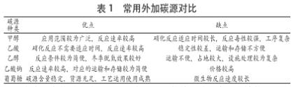 常用的外加碳源有甲醇、乙酸、酒業(yè)廢水、乙酸鈉、淀粉、葡萄糖和食品加工廢水等。表1所示常見的外加碳源的對(duì)比效果: